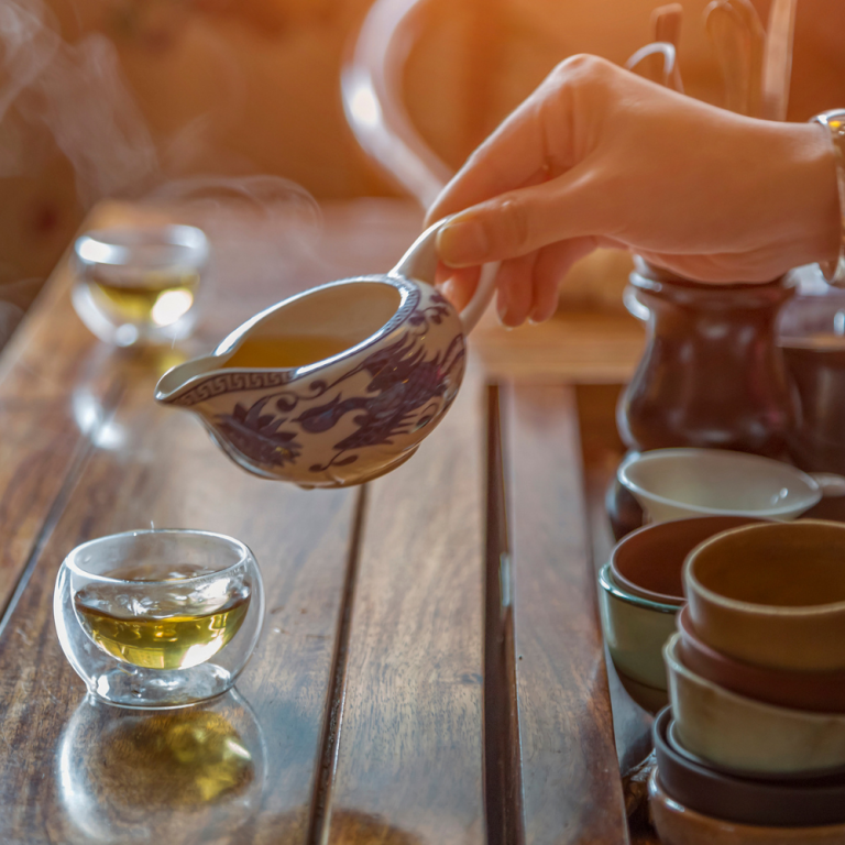 Apakah Upacara Teh Cina? Upacara minum teh Cina ialah tradisi perkahwinan Cina di mana bakal pengantin menghidangkan teh kepada orang tua mereka (ibu bapa dan bakal mertua, tetapi kadangkala, datuk nenek, ibu saudara, dan bapa saudara juga) untuk menunjukkan rasa hormat, mewakili kesyukuran pasangan dan penyatuan dua keluarga.